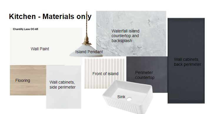 Marble as you can tell by this blog name, was a must. We have looked at countless countertops at CKF, a slab yard, Nebraska Furniture Mart, and all of the home improvement stores. For us personally, we need marble in the kitchen somewhere. We’ll likely go with a waterfall island of Super White Marble (or similar) and a slab backsplash of the same on the back wall. We know it isn’t that durable, which is why our perimeter counter will be a different material. We were interested in a white countertop for the back wall, but I’ve been eyeing the dark grey/soft blacks lately thanks to an episode in season 4 of Dream Home Makeover. This is where material is more flexible for us. We’ll probably go with whatever is the best price. Soapstone, quartz, granite, solid surface, anything works as long as it’s durable and is a matte, dark surface.