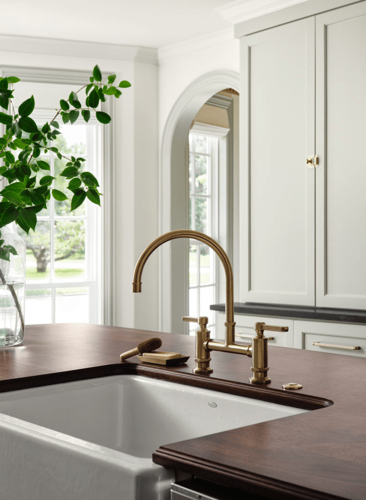 I think I prefer butcher block countertops when they’re either light or dark. The tones in the middle don’t personally speak to me, but I know from watching Fixer Upper that a lot of people prefer those warmer tones! I don’t know that butcher block has a place in our home, but how pretty is it in this kitchen design?!