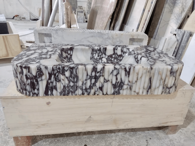 How fun is the color of this marble?! It’s purple! I’ve seen so many people do solid marble sinks in this particular stone type. You can find many available on Etsy, even with fun fluted details.