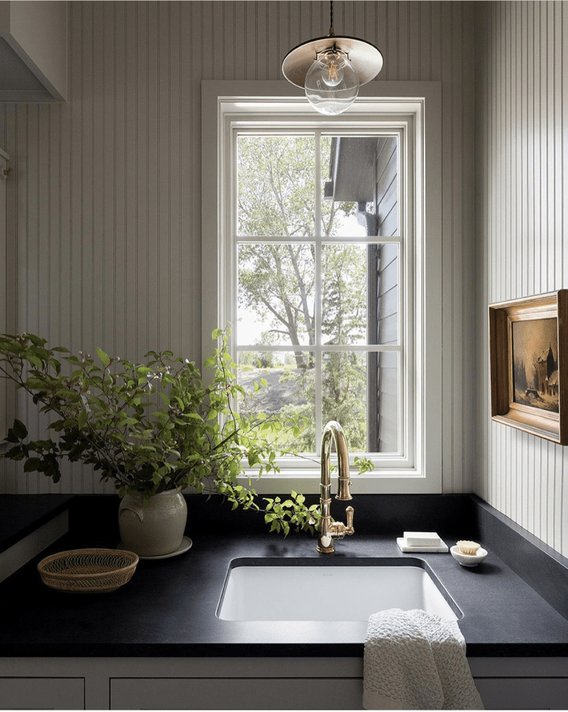 This skinny beadboard draws a lot of attention! One good thing about this wall detail is once it’s up, you really don’t need much in the space to add interest. I feel like I tend to choose design in the functional elements of a space, and that’s exactly what this picture shows. The beadboard, light, towel, and faucet all add some pizzazz without just collecting dust. That said, this may be a paneling detail that I just love to look at! I think the skinny beadboard is a pretty specific style I could see myself growing out of years down the road but would always admire in other peoples’ homes.