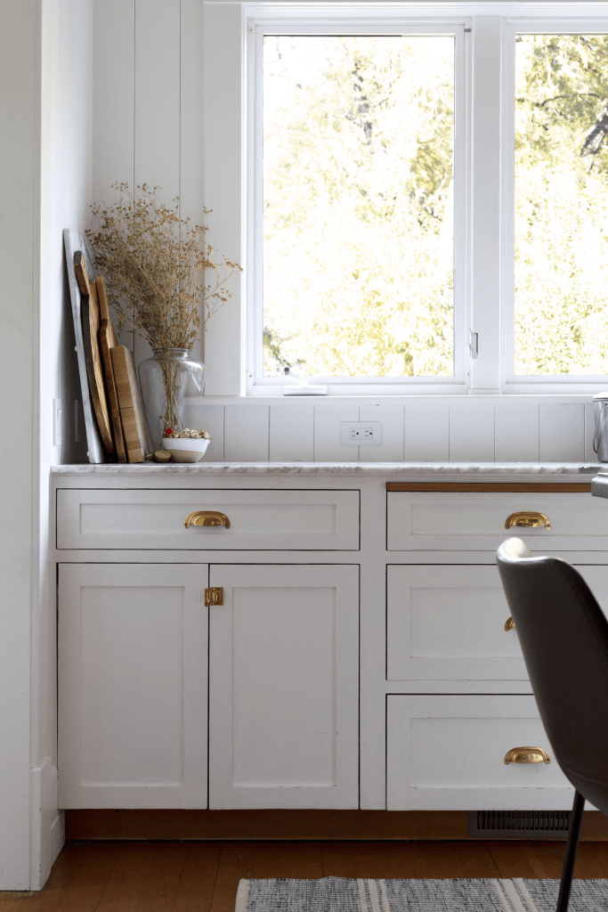 I think this paneling is a lot more subtle than the skinny beadboard, and I love how it’s fully painted. I just pointed out to Brandon that we have this same white paneling in our kitchen, so it truly is a quiet detail.