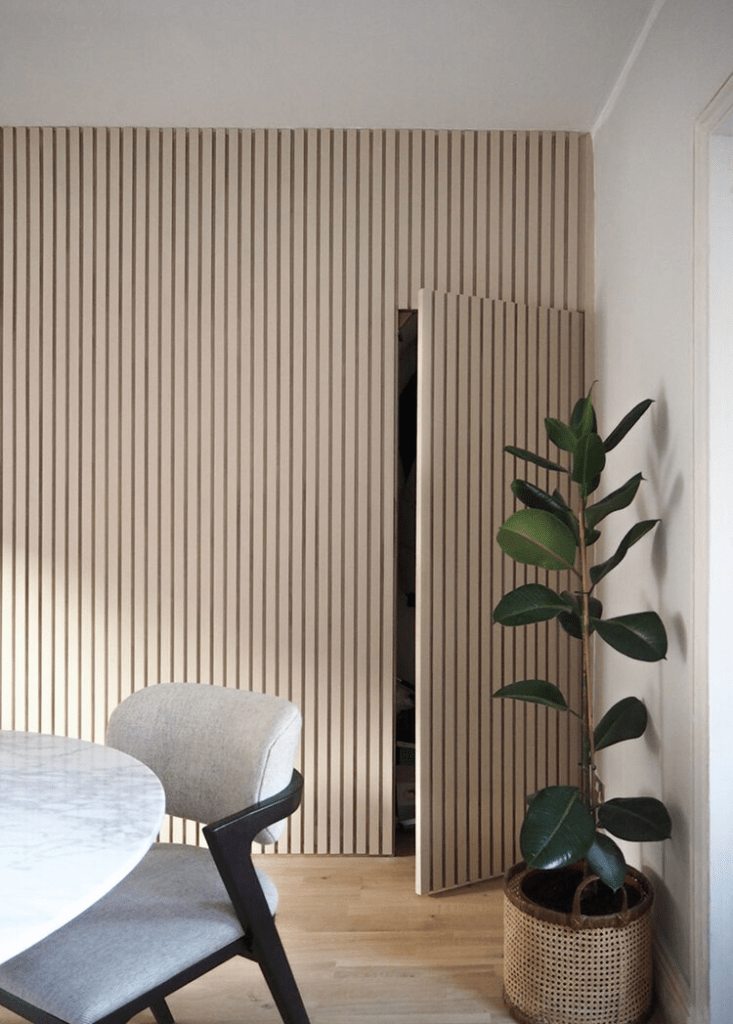 Brandon has been very interested in having at least one hidden door in the new house, and I love the look of these slats! If we had a built in door, it would need to be for a room with little traffic. I’m really crossing my fingers for a home gym connected to the primary suite, but I don’t want it to be too nestled into the house without a way back to the main living area. An inconspicuous way to enter from the main living space or hallway would be perfect!