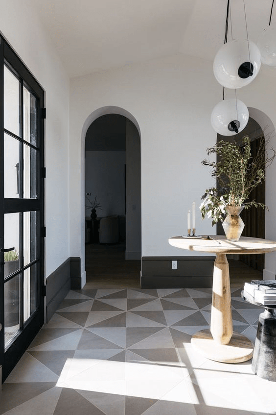 Kristin’s house is an H shape, which allows her to have an entry way that you don’t need to walk through. This table is in the middle of the entry without disrupting flow of traffic. I thought it was different that she did extra tall baseboards in this space, and I love the arched doorways.