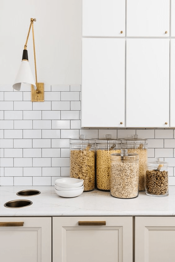 This is a shot of her pantry. I’m not crazy about the design of this space, but I love the concept of having countertop holes for garbage or cans! Maybe we’d do something like this in the garage or the downstairs kitchenette for when we have guests over for sports games?