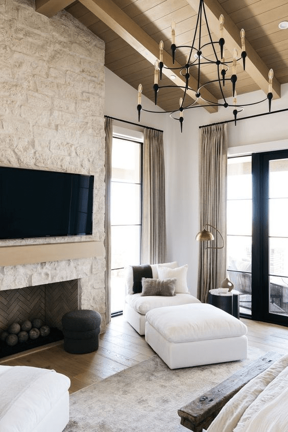 How cozy would it be to sit and read in this primary bedroom? I love the seating they chose!