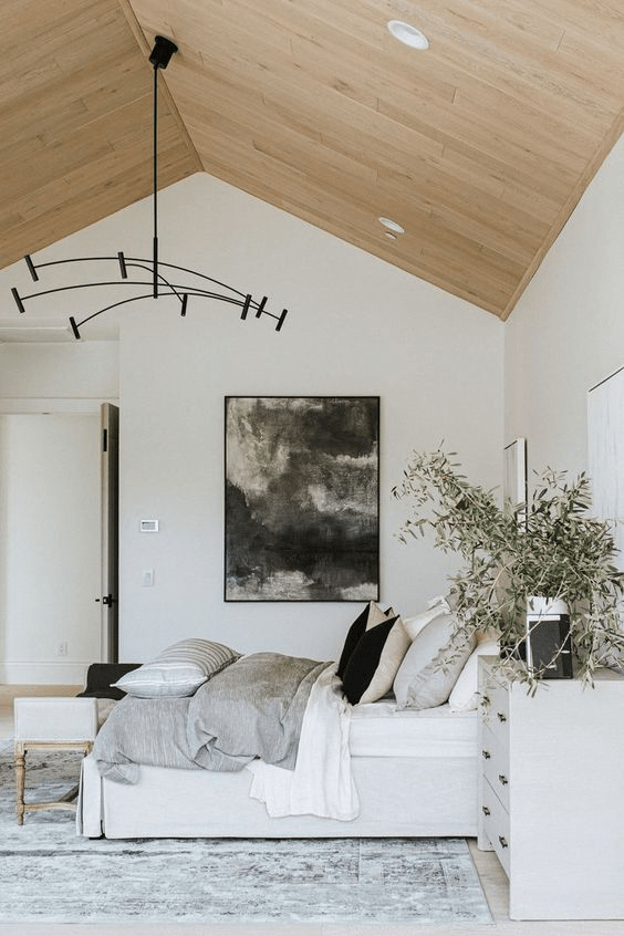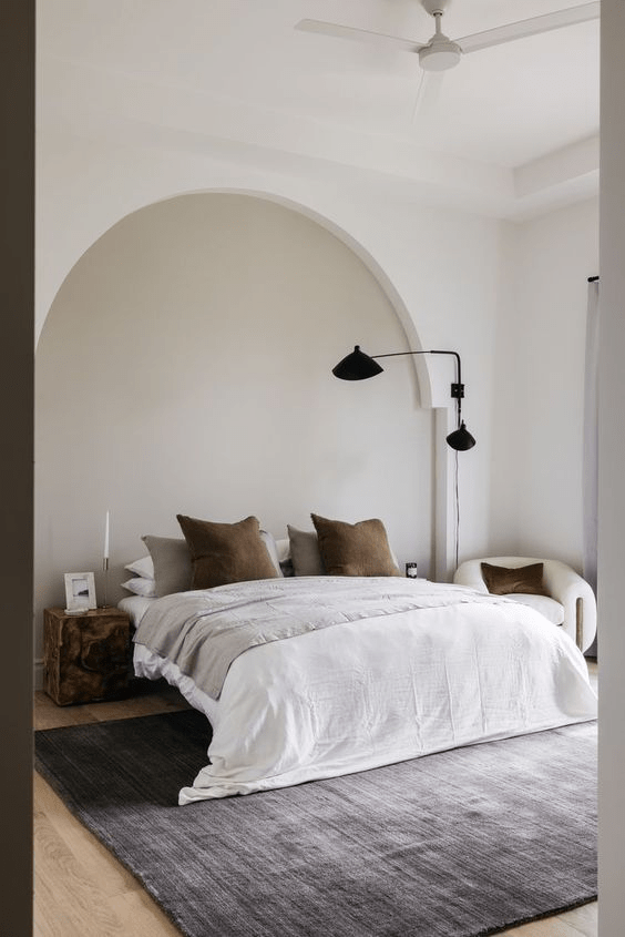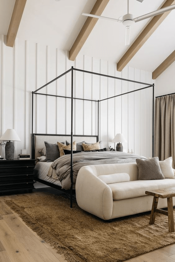 Loving the casual vibes in this bedroom paired with the wall’s design feature!