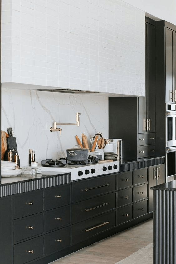 How neat is the reeded detail between the countertop and cabinetry?! So cool!