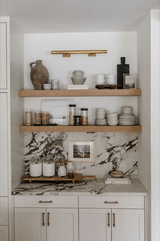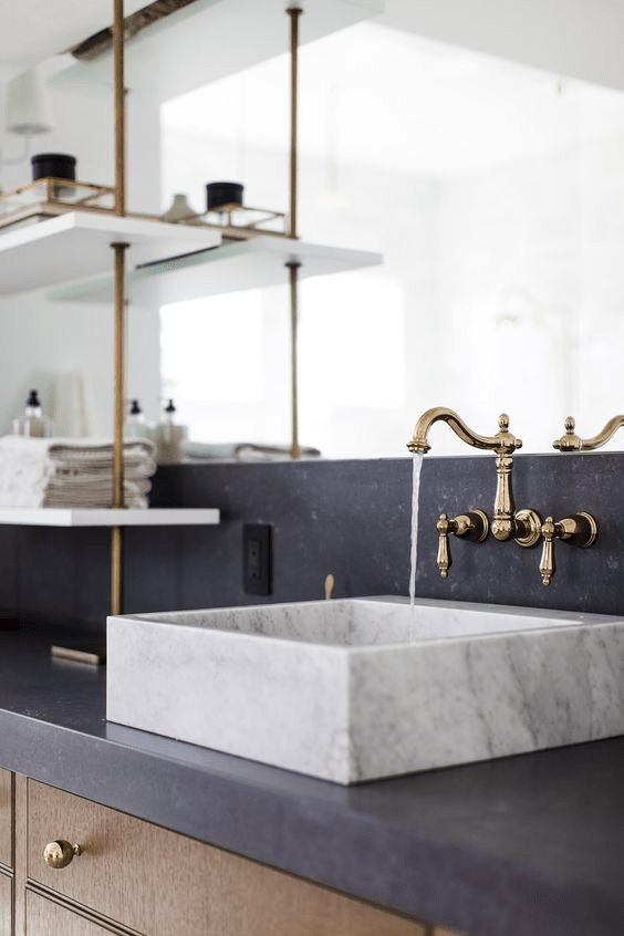 Love the marble sinks here! Also, look at that shelving! Very functional.
