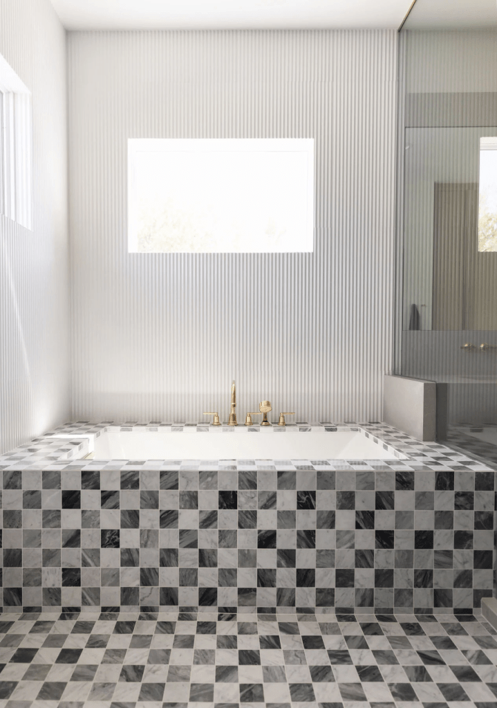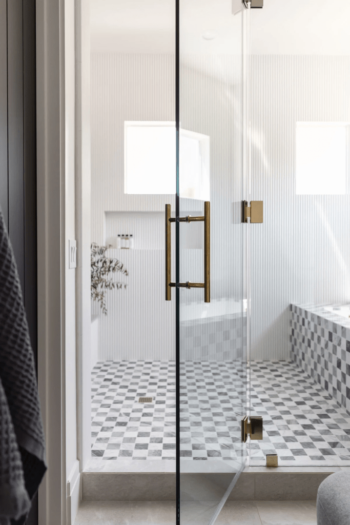 When the #53rdBuild sneak peeks were first shared by THELIFESTYLEDCO, I was interested. But when they did their construction update and featured a bold checkered tile on the shower floor and tub surround, I was absolutely captivated.