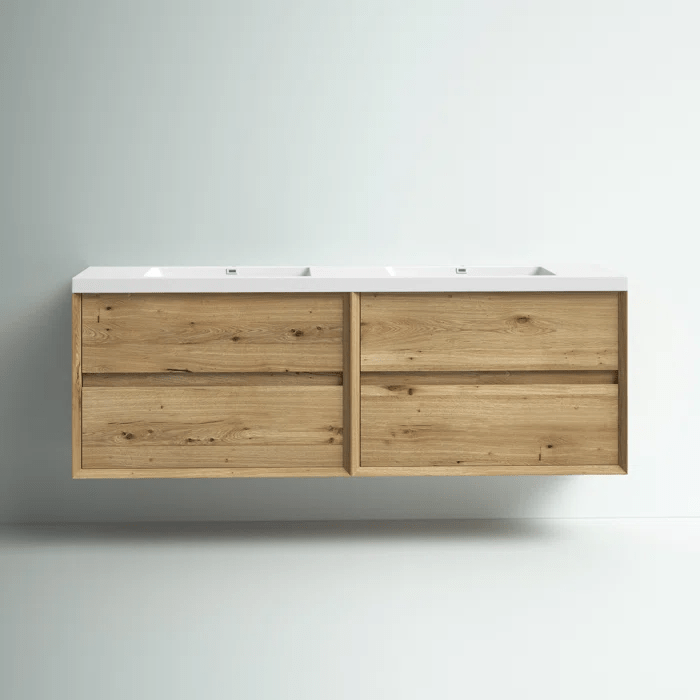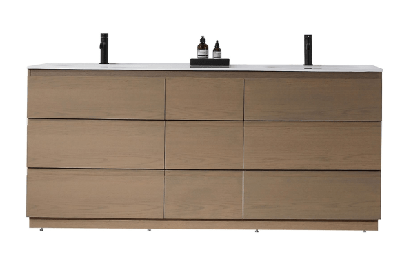 1. This vanity is 6 feet wide! It has double sinks and a perfectly neutral wood tone. It’s currently $2400.