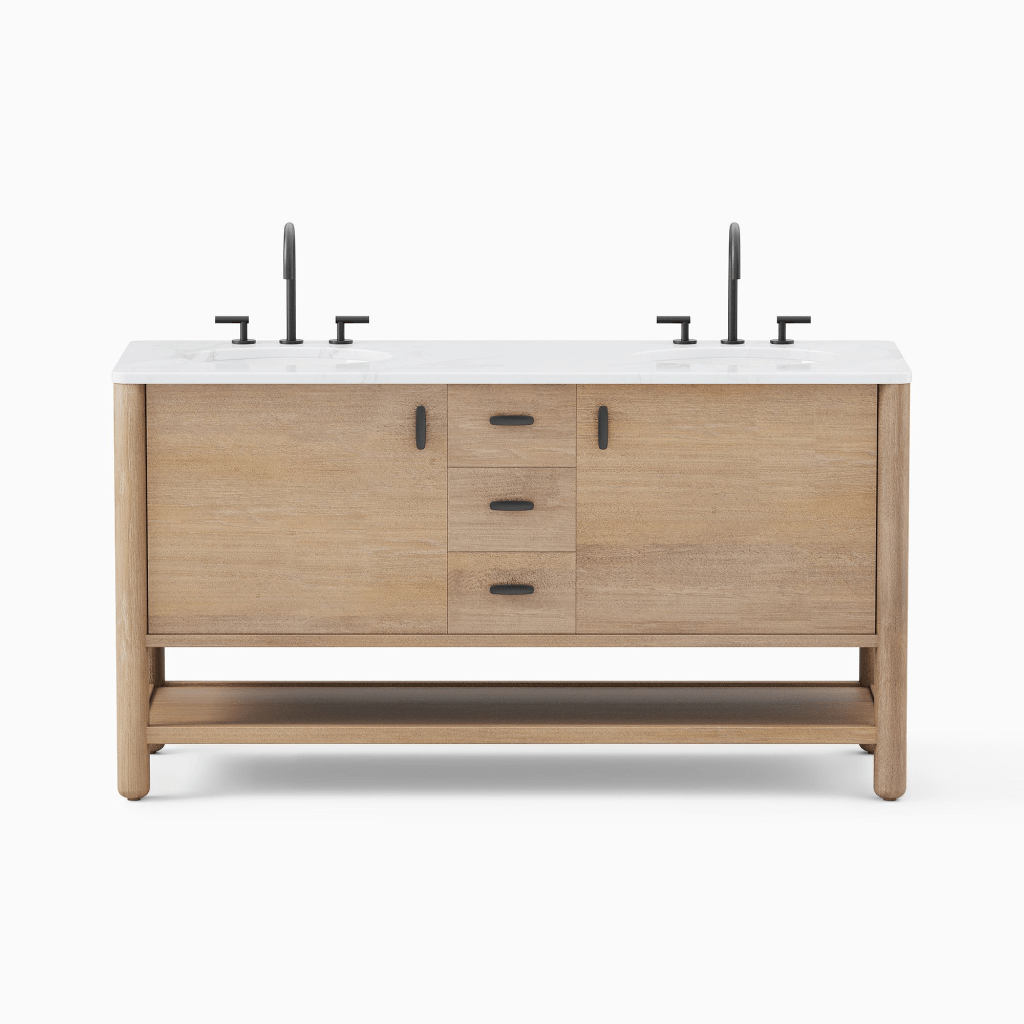 West Elm 10. I feel like a big thing right now is making your kitchen and bathroom cabinetry look like furniture, and this vanity definitely gives dresser/nightstand vibes. It is absolutely cute as a button, so the price of $2700 at 63 inches wide is worth it to me!